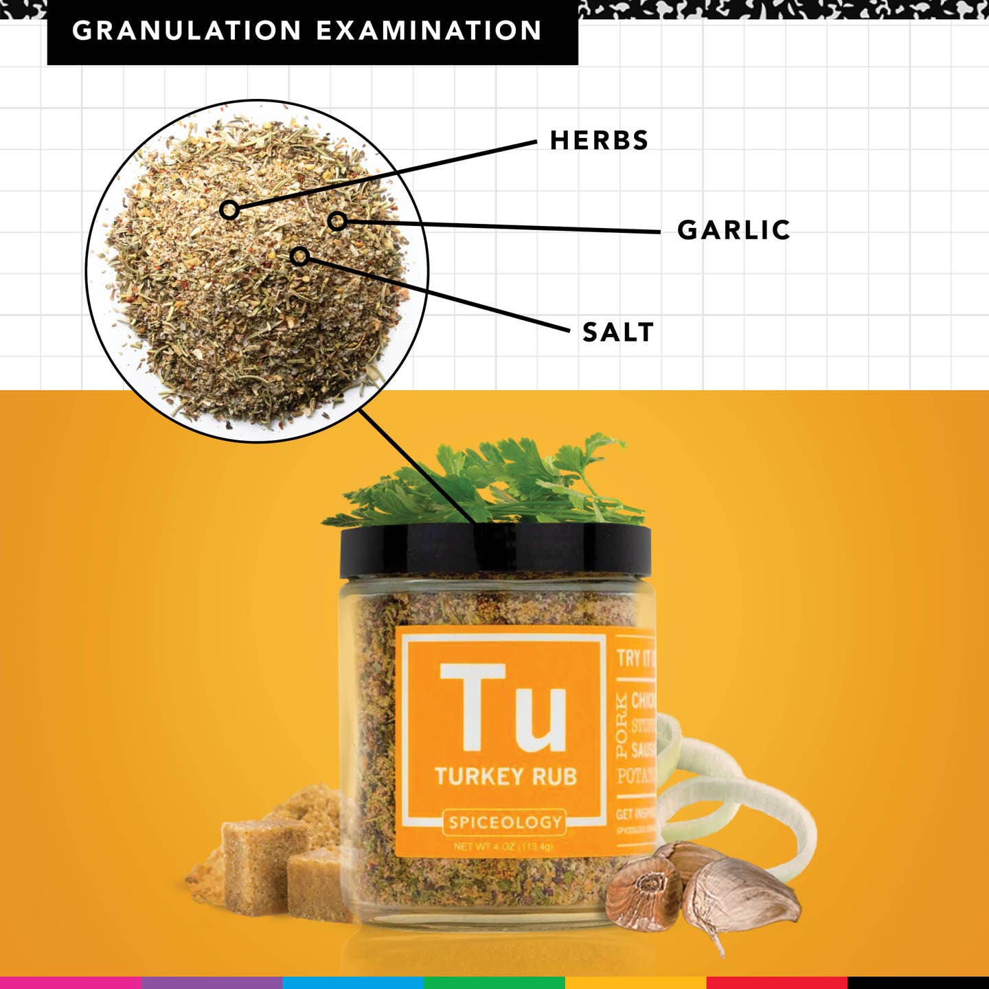 Spiceology Turkey Rub Blend is Great to try on turkey, chicken, stuffing, pork, sausage, and potatoes.